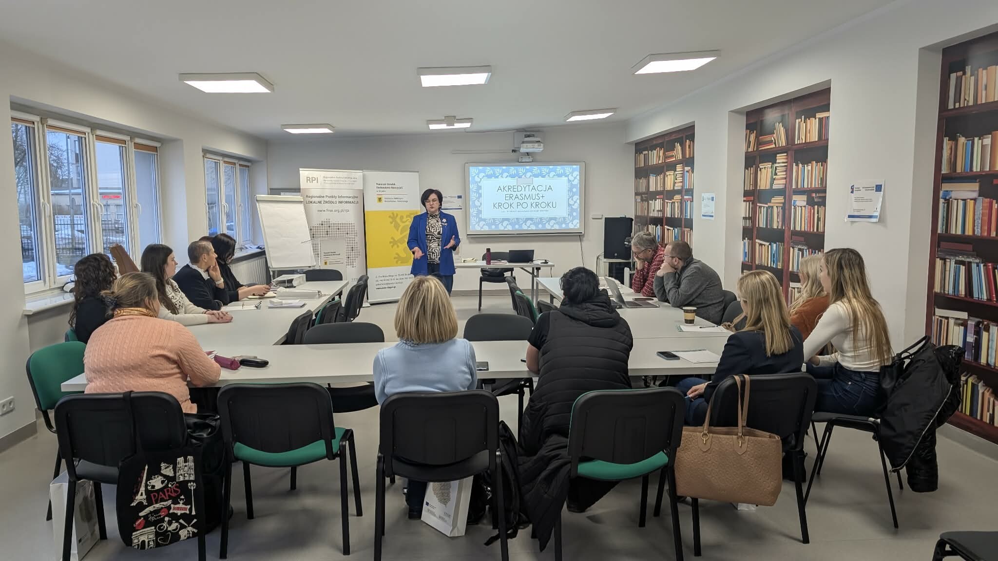 W dniu 24 lutego 2026 r. w Pomorskim Ośrodku Doskonalenia Nauczycieli w Słupsku w ramach funkcjonowania Regionalnego Punktu Informacyjnego Erasmus+ odbyło się szkolenie pt. „Akredytacja w programie Erasmus+ krok po kroku w praktyce nauczycieli kształcenia zawodowego i doradców zawodowych”.