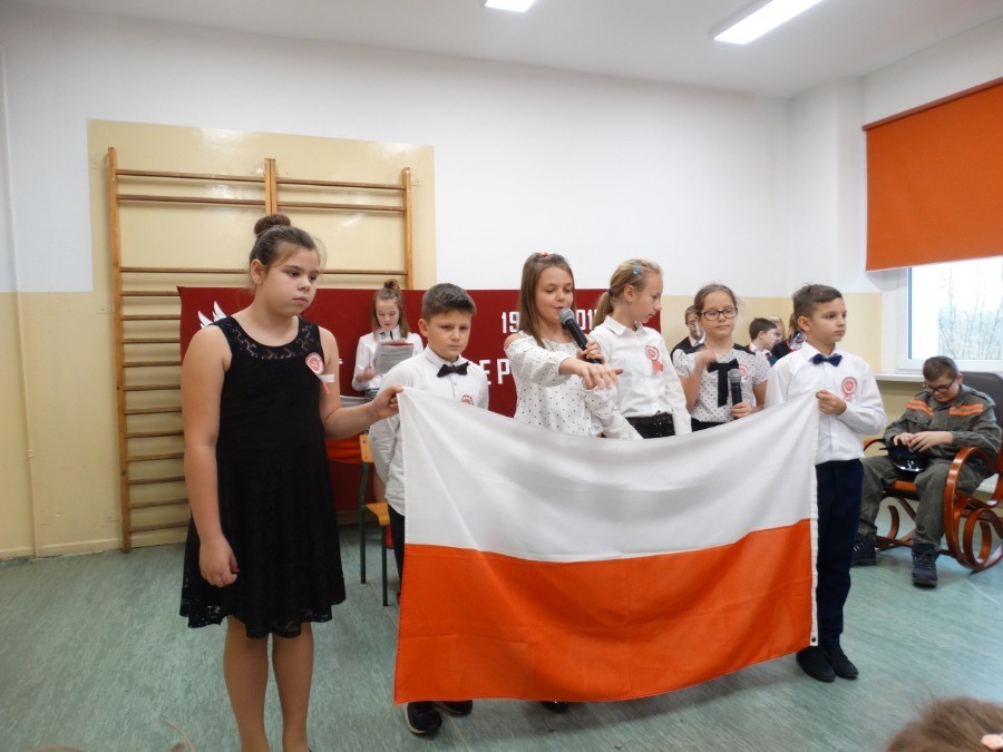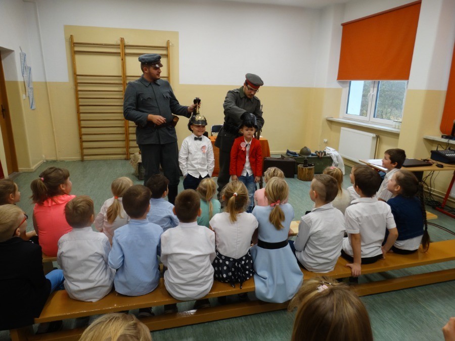 Dokładnie o godz. 11:11 wspólnie z naszymi gośćmi oraz przybyłymi rodzicami  w ramach akcji  MEN  „Świętujemy Niepodległą” odśpiewany został hymn Polski. W dalszej części akademii  uczniowie z  kl. IV-VI zaprezentowali się w przedstawieniu  „Polska droga do niepodległości”. Głównym jego celem było uświadomienie oglądającym znaczenia wolności i patriotyzmu w życiu każdego Polaka i naszego narodu.