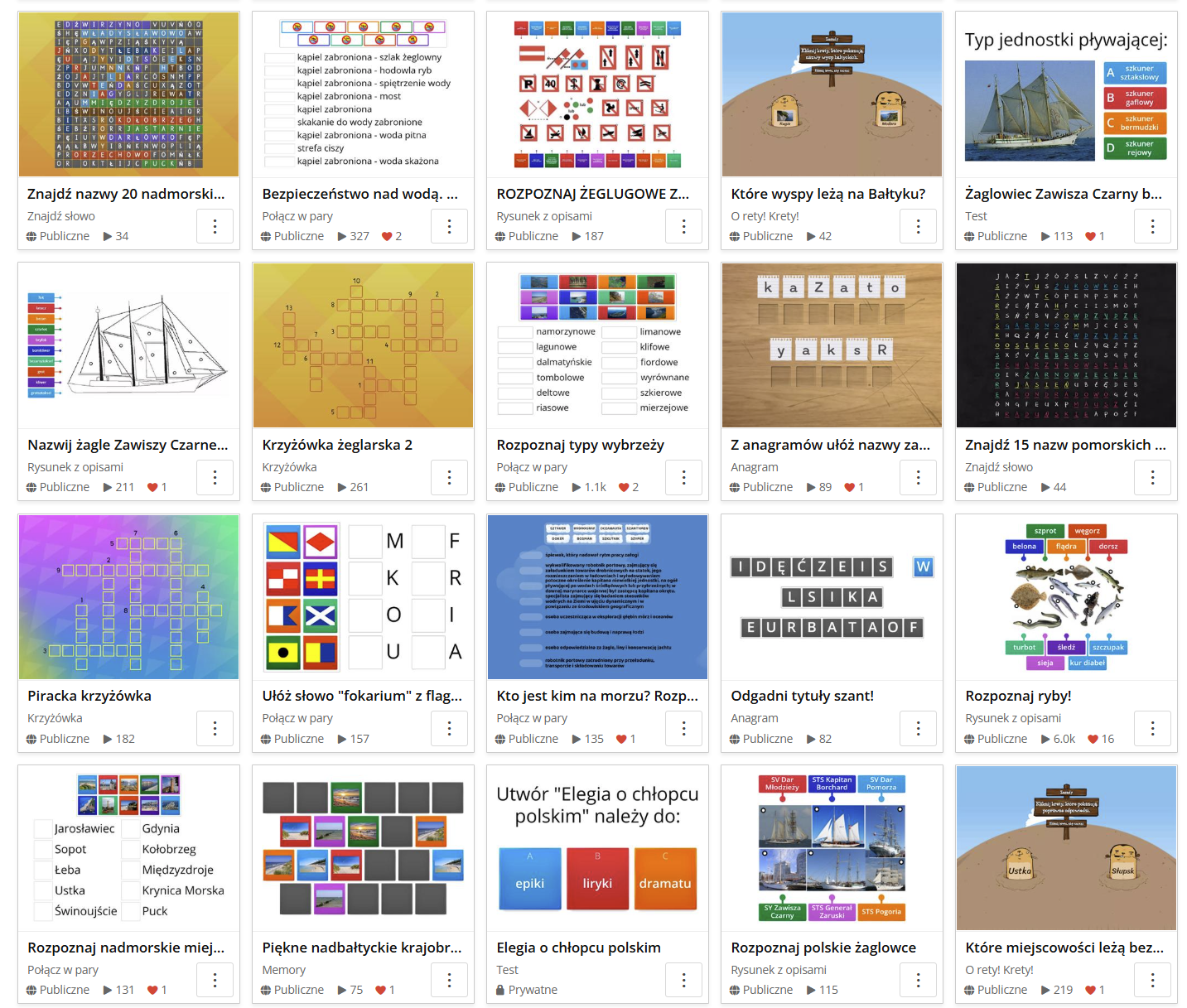 Zadania na stronie: https://wordwall.net/pl/search?localeId=1045&suggest=false&query=Kategoria%3A%20edukacja%20morska