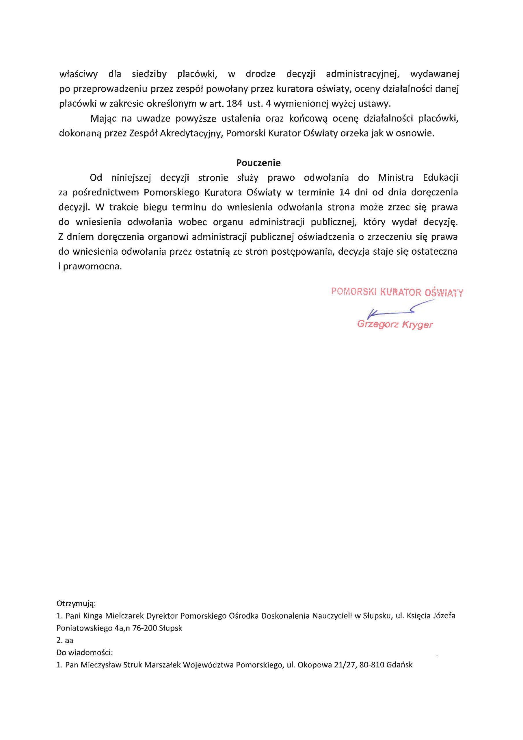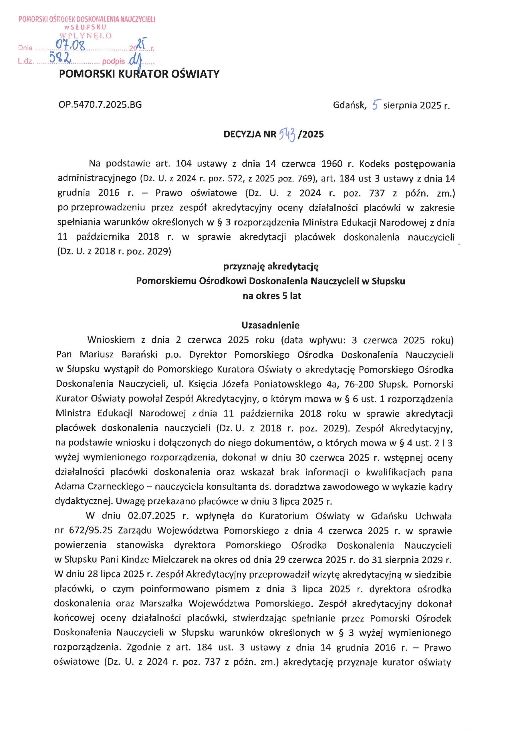 Akredytacja Pomorskiego Kuratora Oświaty 5.08.2025 r.