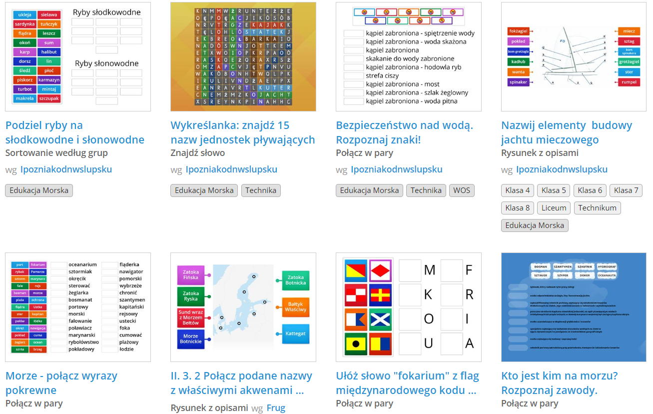 Link do interaktywnych zadań: https://wordwall.net/pl-pl/community/edukacja-morska