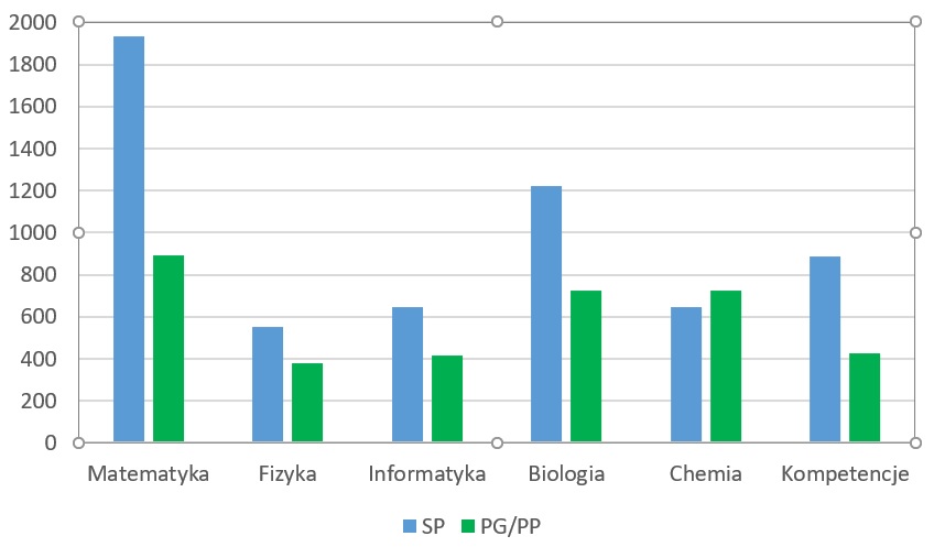 z biologii, chemii, matematyki, informatyki, fizyki, przedmiotów rozwijających kompetencje społeczne