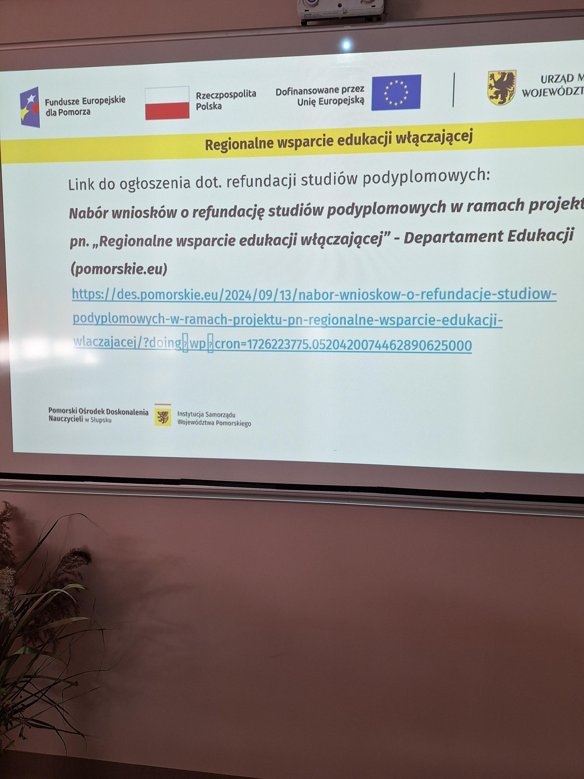 W poniedziałek, 23 września 2024 r. w sali konferencyjnej PODN w Słupsku odbyło się szkolenie terenowe z projektu "Regionalne wsparcie edukacja włączającej". Tematem spotkania była "Edukacja włączająca/inkluzyjna - szanse i wyzwania". Omówiła go Justyna Jachimczyk - Miller, ekspert ds. edukacji włączającej z Nowego Dworu Gdańskiego.