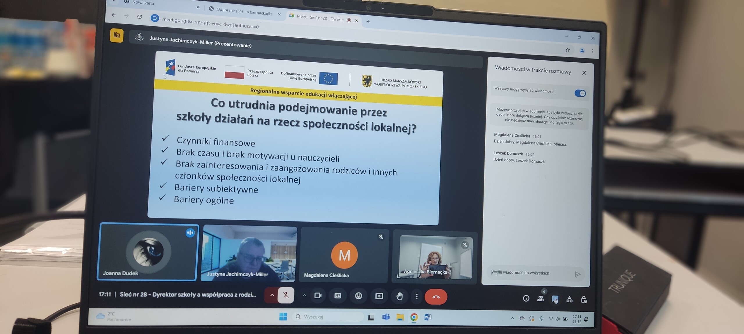 11 grudnia 2024 r. odbyło się trzecie i zarazem ostatnie spotkanie stacjonarne w sieci współpracy i samokształcenia nr 28 pn. realizowanej w ramach projektu Regionalne wsparcie edukacji włączającej  (FEP 2021-2027). Tym razem spotkanie poświęcone było zagadnieniu współpracy dyrektora z rodzicami i środowiskiem lokalnym.