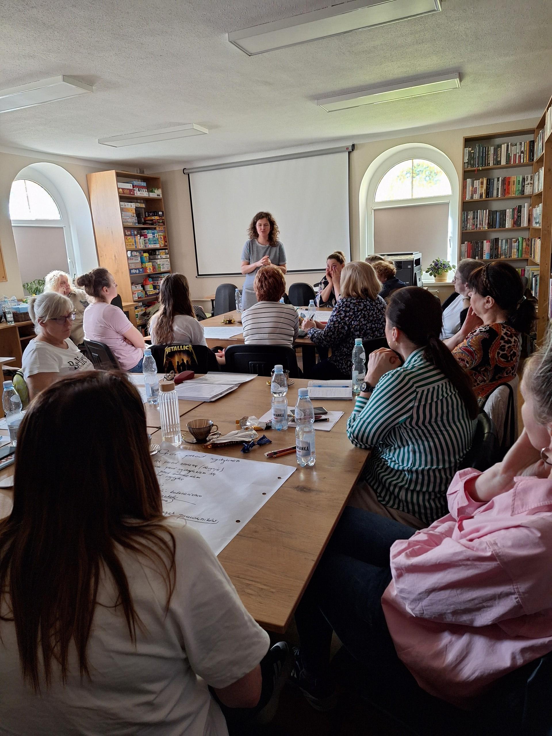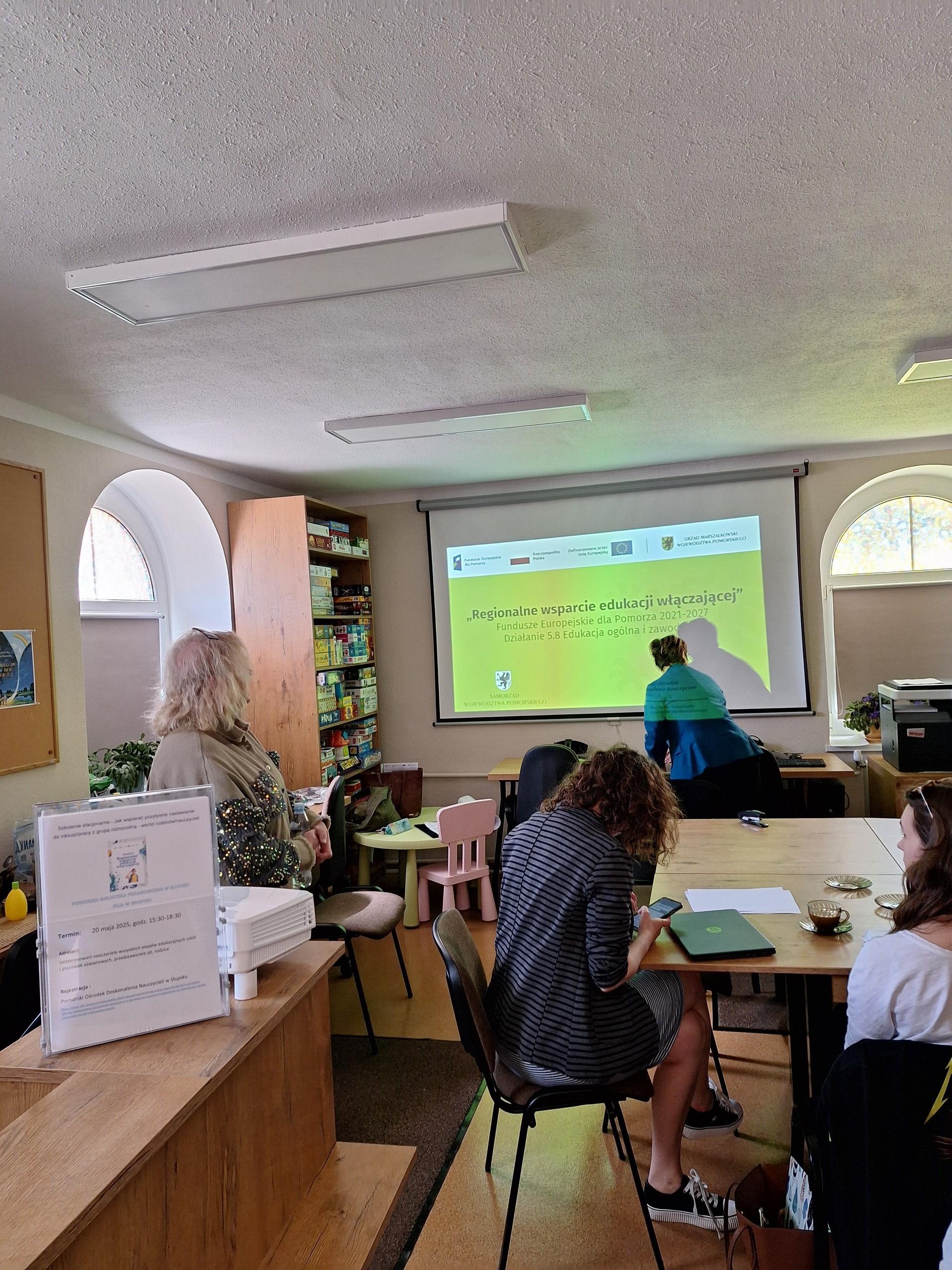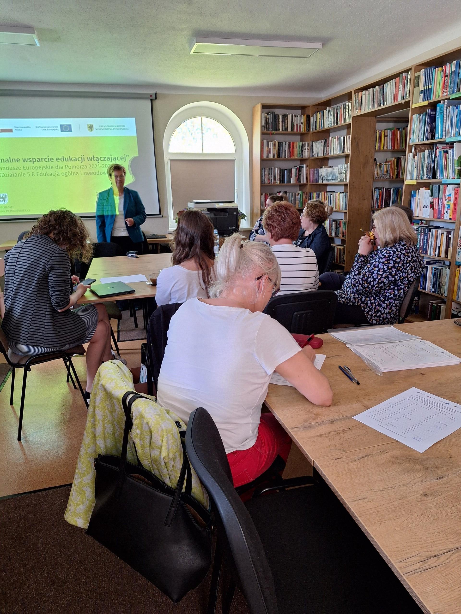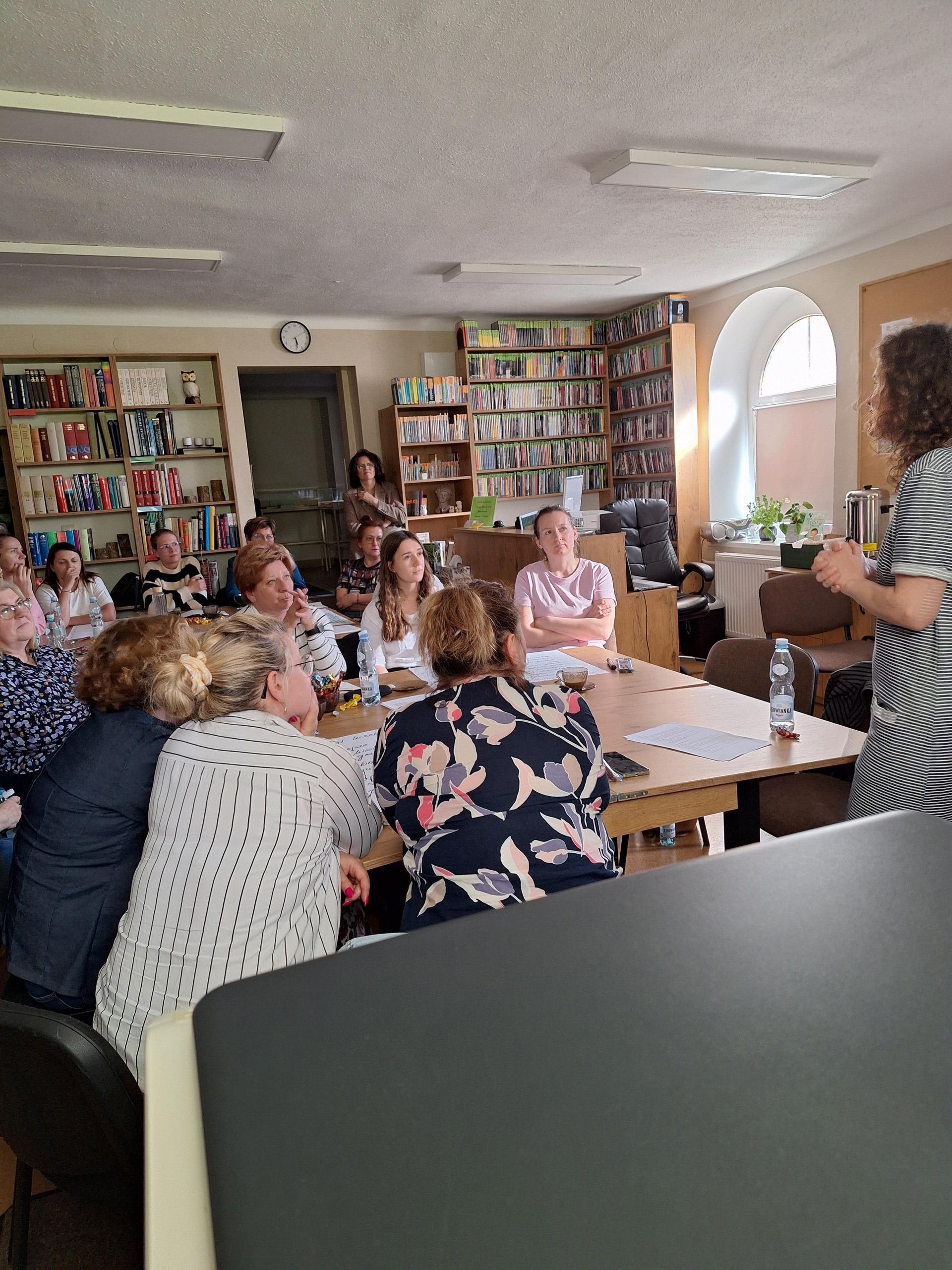 20 maja 2025 r., w czytelni Filii Pomorskiej Biblioteki Pedagogicznej w Miastku, odbyło się drugie szkolenie terenowe, realizowane w ramach projektu Regionalne wsparcie edukacji włączającej. Tematem spotkania było zagadnienie pn. Jak wspierać pozytywne nastawienie do inkluzji/pracy z grupą różnorodną - wśród rodziców/nauczycieli?