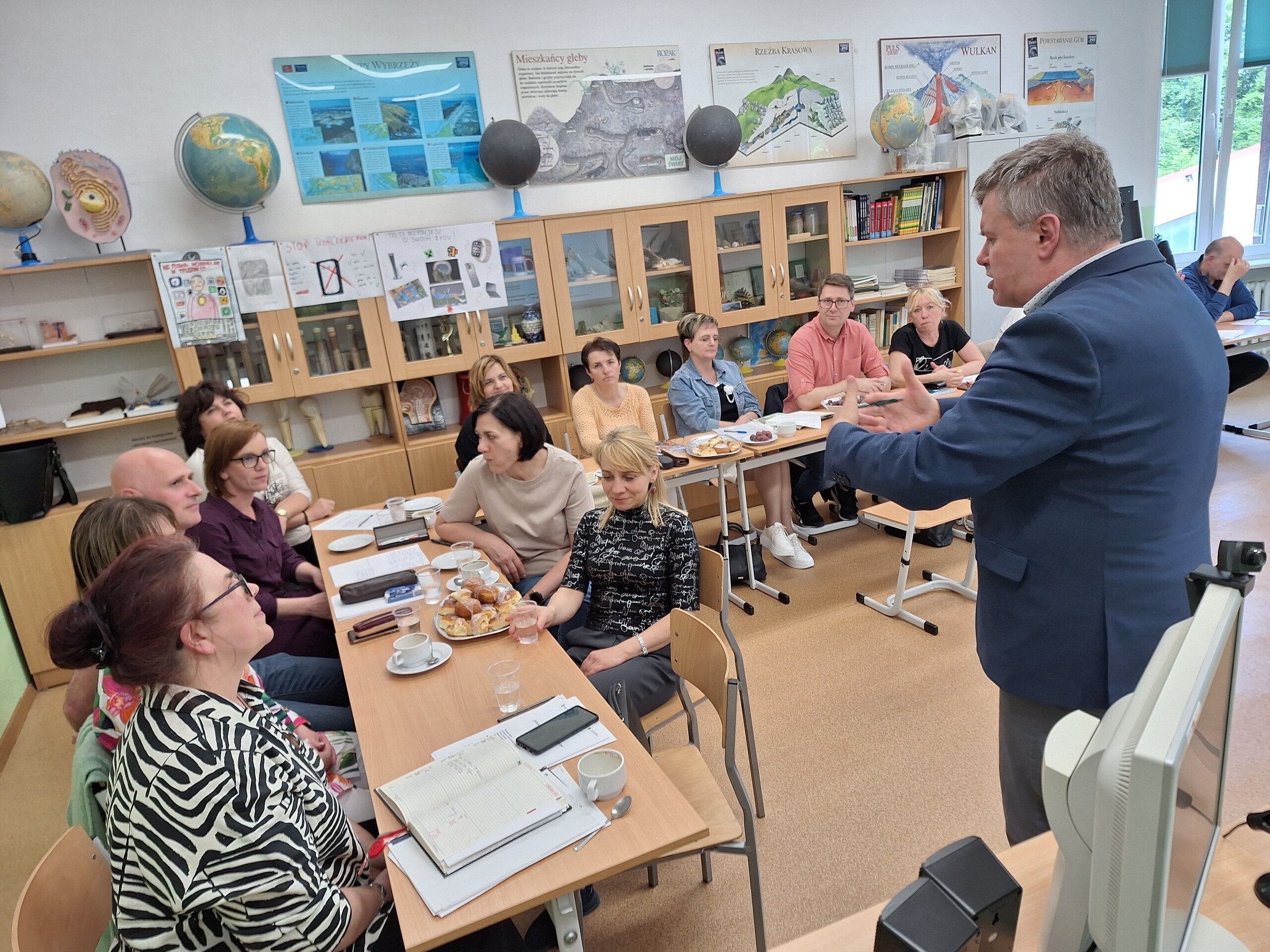 Szkolenie terenowe dla nauczycieli i dyrektorów szkół, zorganizowane na terenie gminy Główczyce w Szkole Podstawowej w Pobłociu, koncentrowało się na dyfuzji innowacji w środowisku edukacyjnym oraz rozwijaniu myślenia krytycznego. Uczestnicy zgłębiali sposoby wdrażania nowych pomysłów i rozwiązań, które mogą realnie poprawić jakość nauczania i uczenia się. Szczególny nacisk położono na umiejętność analizowania informacji, rozpoznawania fałszywych wiadomości oraz formowania niezależnych opinii. Szkolenie miało na celu wyposażenie kadry pedagogicznej w narzędzia niezbędne do świadomego wyboru i adaptacji innowacyjnych metod pracy. Dzięki temu nauczyciele i dyrektorzy mogą skuteczniej wspierać uczniów w rozwijaniu kluczowych kompetencji XXI wieku, przygotowując ich do wyzwań przyszłości.